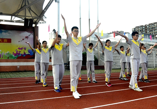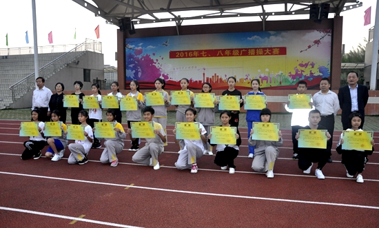 为丰富校园生活,培养学生集体荣誉感、团队协作意识和竞争意识,展示学生青春活力和良好的精神风貌,在第六届田径运动会开幕前夕,我校于11月3日在田径场隆重举行2016年七、八年级广播操大赛。本次大赛以“舞动青春旋律,飞扬青春活力”为主题,在初中部德育处、艺体发展中心的组织下顺利进行,七、八年级33个班级学生参与活动,展开以班级为单位的广播操现场演练评比,范小星校长、蒋晓明副校长等领导干部全程观摩比赛,并为表现突出的获奖班级授予荣誉,以示鼓励。