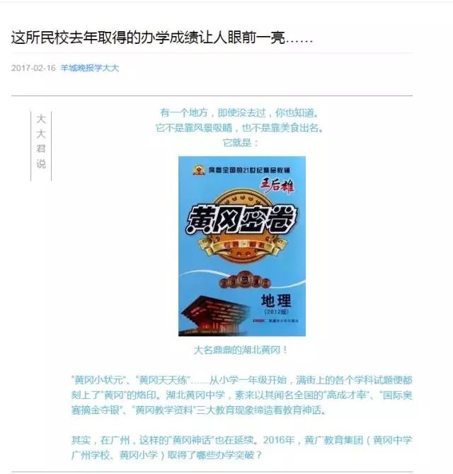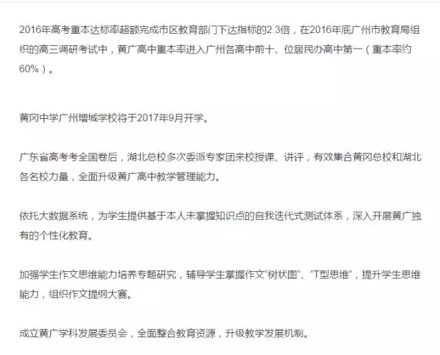 羊城晚报:黄广教育集团2016年成绩让人眼前一亮