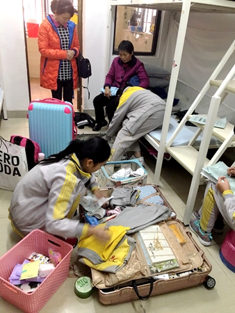 看!“豆腐块”诞生了!出自上下铺不同学生之手,以一致的规格标准整理折叠,相差无异。