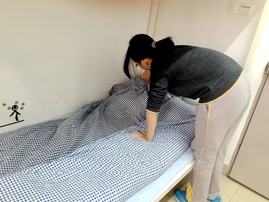 即使是自己天天休息使用的床铺被褥,也要按要求细心整理。在黄广生活老师长期的耐心指导下,叠被子已经是黄广学子的“拿手绝活”。