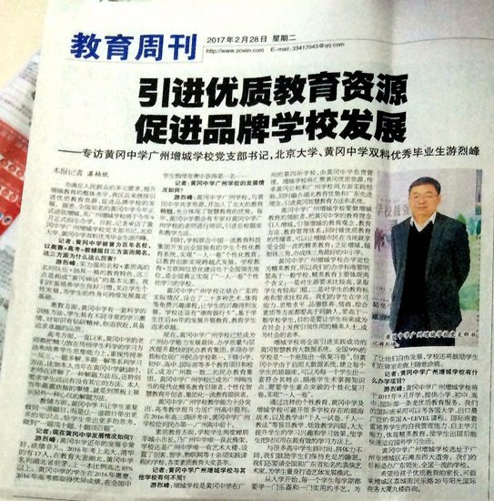 为满足人民群众的多元需求,提升增城教育的整体水平,我区近来继续引进优质教育资源,促进品牌学校的发展。据悉,全国知名的黄冈中学今年正式进驻增城,其广州增城学校将于今年9月正式招生办学。日前,记者采访了黄冈中学广州增城学校党支部书记,北京大学、黄冈中学双料优秀毕业生游烈峰。