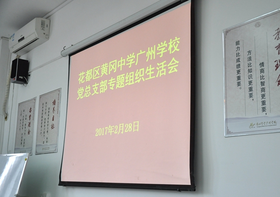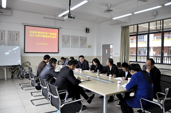 2月28日,黄冈中学广州学校党总支召开本年度专题组织生活会。花都区教育局党委书记张克彬局长等领导亲临现场参加会议,指导学校民主生活会的开展。