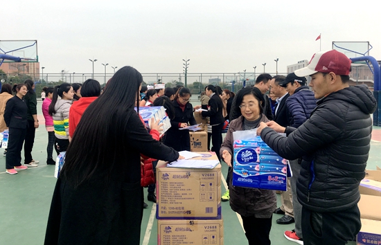 随后,趣味活动在工会委员们的组织下拉开了序幕。全部参赛的女教职工分为三大组,分别就“盛水接力”“穿越呼啦圈”等趣味项目的竞赛比拼。现场活动既轻松有趣,又考验各参赛队伍的默契度和协作力,欢笑声、加油声和鼓掌声此起彼伏,我校女教职员工在课堂外活力四射的新面貌得到充分展现。随即,工会对获得名次的队伍发放丰富奖品,并再次表示。
