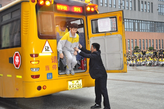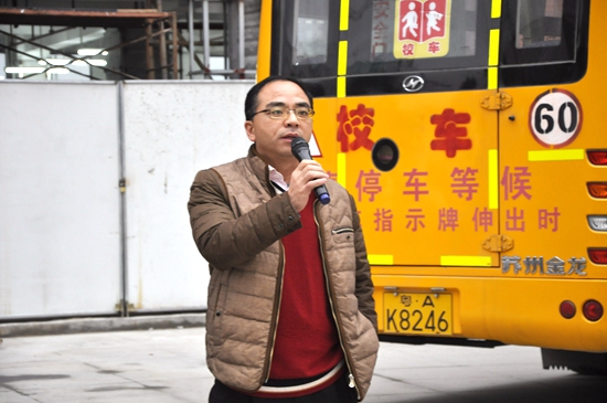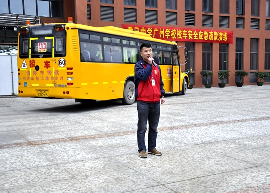 广州珠航校车服务有限公司培训专员曾浩森先生作为本次大型演练的首席教官,现场为七年级师生讲解校车安全防范的体系机制,对校车内外存在发生几率的种种危急状况进行全方位介绍。