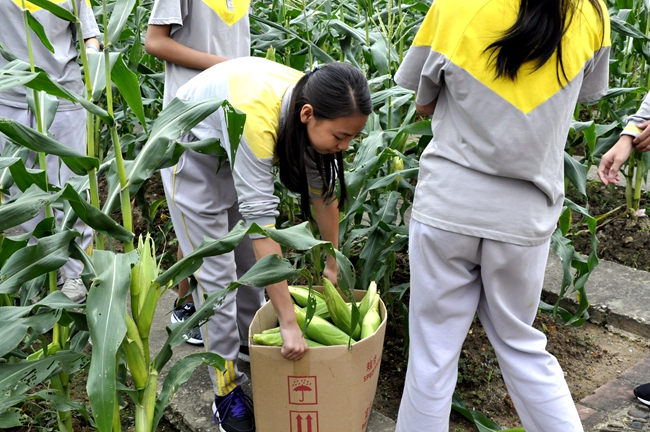 从播种、浇水、除草、施肥、采摘等全流程,由学生们自主完成,现在,玉米成熟了......