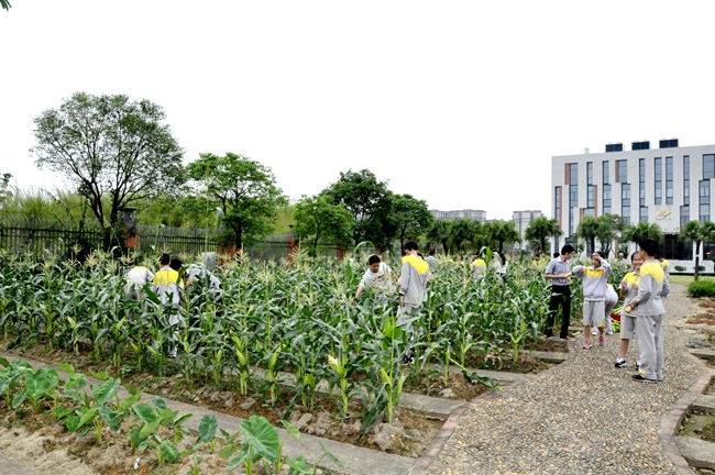 学校为增强孩子们对劳动的认识、培养孩子的劳动实践能力,在寸土寸金的位于广州空港商务区中心位置的校园内,专门开辟了一大片种植园,每班都有“责任地”,供孩子们劳动实践。