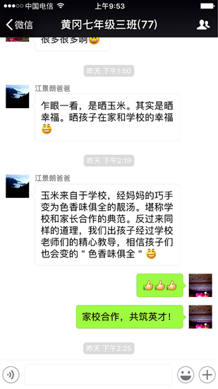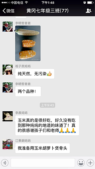 同学们将自己种植、收获的玉米带回家,引起了家长的热烈反响,家长们在欣喜孩子进步的同时,纷纷点赞:
