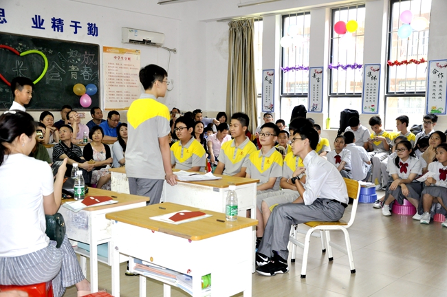 这天,孩子们在卢老师和瞿老师的带领下,情绪高涨,有礼貌地问候着,笑吟吟地迎接着我们的到来。他们又长高了,姑娘们出落得亭亭玉立,小伙子们有的开始能看到喉结了,孩子们长大了!看个人主页、猜人名忆童年,歌剧、街舞、看视频、小品、歌舞……尽管教室空间小,但我们能看出每一个环节、每一个小节目都是学生和老师精心准备的,服装、道具、场景、活动内容一点也不含糊,家长与孩子在欢快、温馨的氛围中互动,孩子们以最佳状态向我们汇报自己的成长与进步。