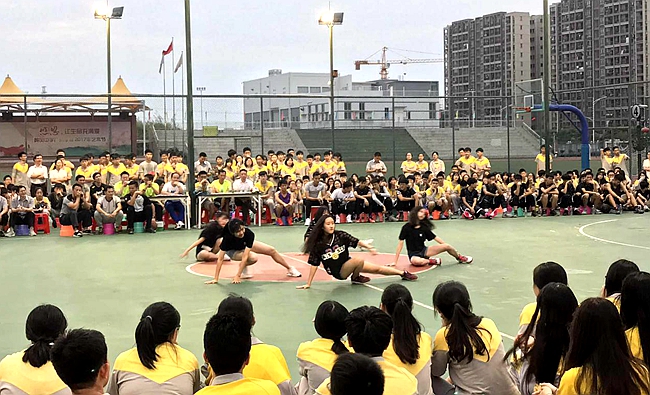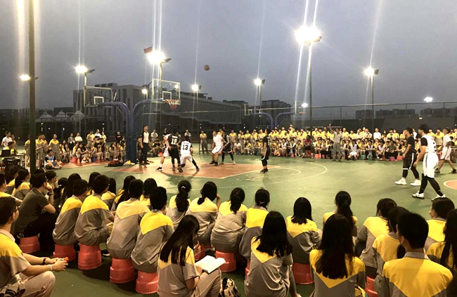 傍晚6:40,高中部学子成群结队进驻篮球场,青春洋溢的高歌、动感十足的劲舞为“篮球之夜”正式揭幕!