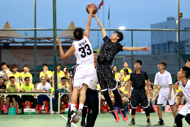 奔跑、抢球、跳跃、灌篮……汇集篮球高手的高一明星队与高二明星“全面开战”,紧张激烈的比分浮动牵动着现场观众的神经。