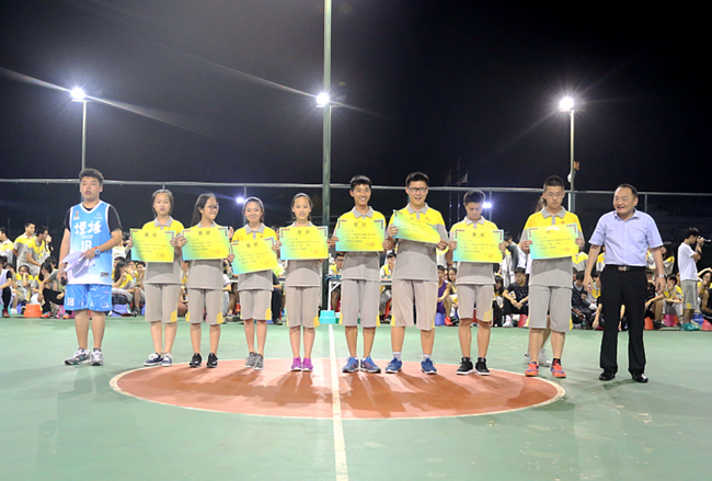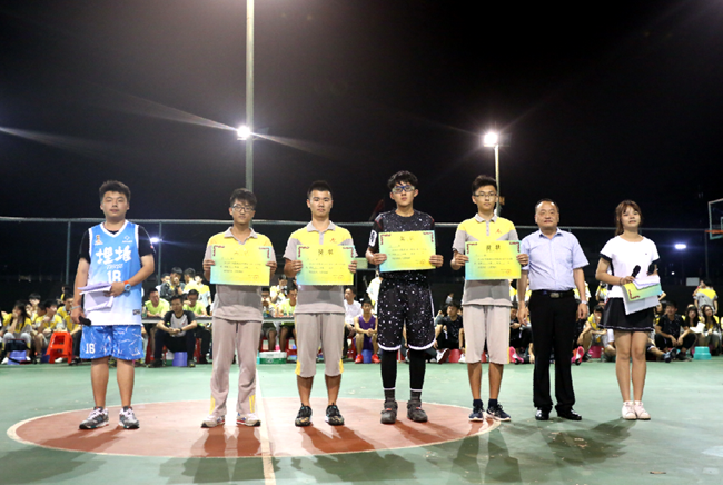 杨文化主任、黎强副主任代表学校为篮球联赛获胜班级颁发奖状,并为表现突出的明星球员们授予荣誉。
