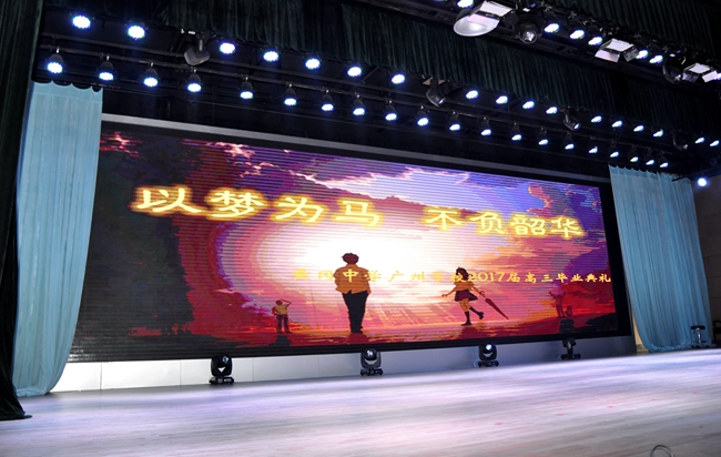本年度高三毕业典礼以“以梦为马,不负韶华”作主题,由高三年级师生共同策划组织,这是2017届高三学子在黄冈中学广州学校的“最后舞台”。