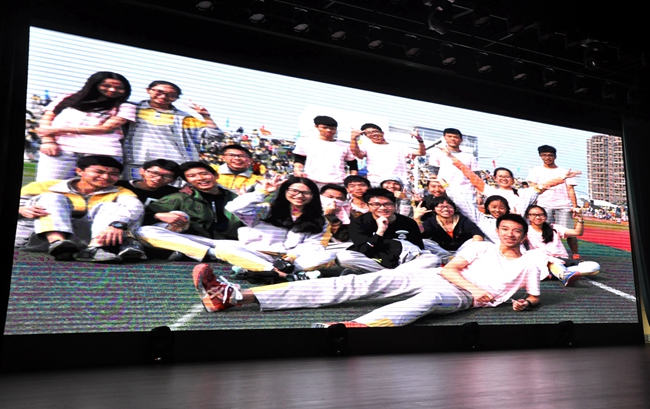 第一次军训、一年一度的校运会、人人参与的艺术节……高三教师们特别制作的“时光片段”,呈现出孩子们在校求学六年光阴的一幕幕。学生们入学初期稚气未脱的小面孔在舞台上不断闪现,日渐变化成长的青春气息溢出荧屏,引起现场阵阵感叹。