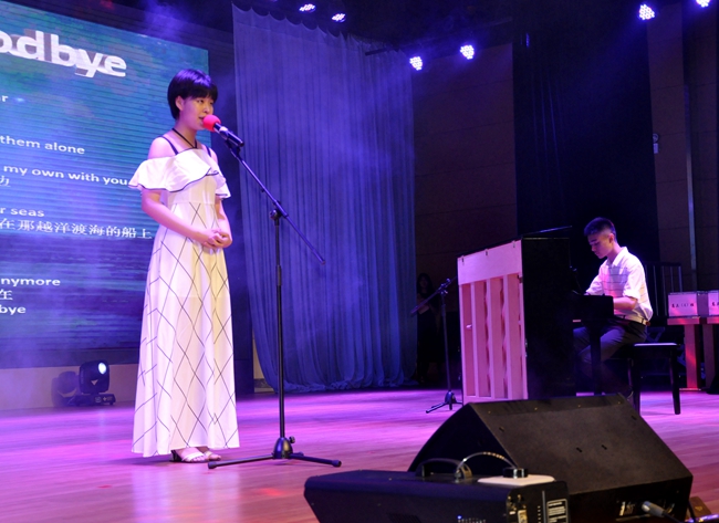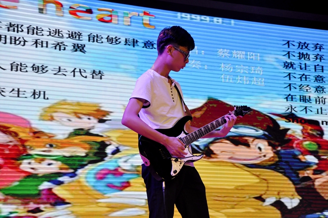 舞台上,高三、高二学生为现场观众深情献唱首首金曲,每一首歌都记载着学生们求学青春的共同回忆,每一个旋律都烙下了独有的黄广印记。
