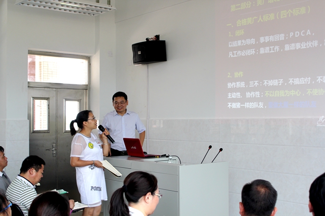 在“如何成为优秀的黄广人”主题中,游书记多次强调“PDCA闭环管理”工作模式的重要性,话题深入浅出、生动有趣,通过“大雁飞行理论”案例分析及教工个人分享,让大家深刻地认识到要成为合格黄广人所需要具备的四大基因、并如何通过“四化建设”将黄广DNA全面注入增城校区全体教工血液中。