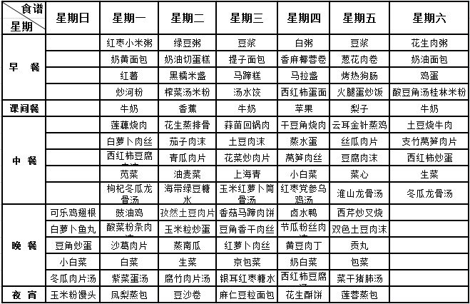 黄冈增城学校9月24日-9月30日(第四周)学生食堂营养菜谱