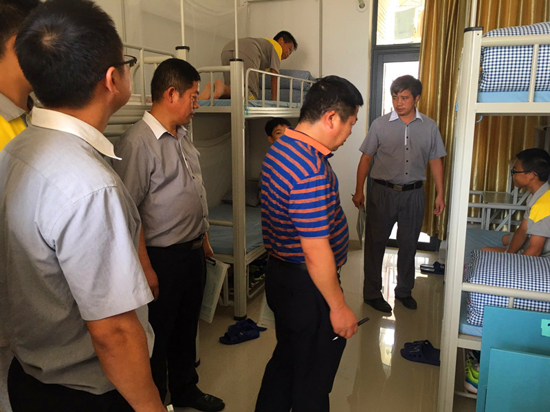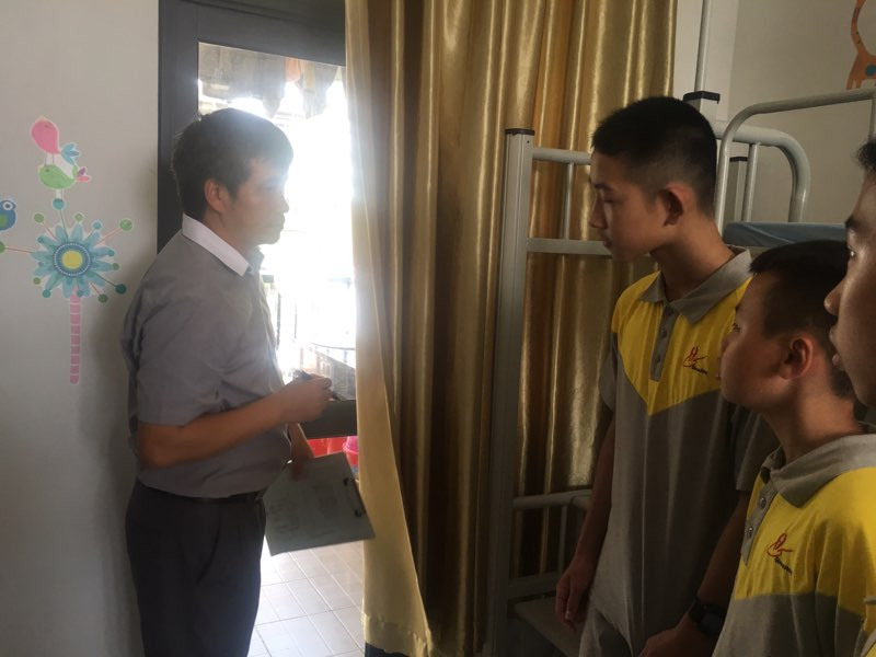 蒋晓明校长、吴茂荣主任带领中学部全体中层干部及班主任突击检查孩子们的宿舍内务整理情况。