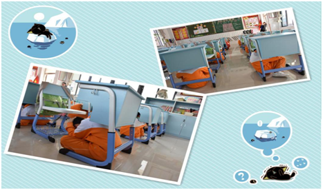 10时15分,第一声警报拉响,正在上课的教师立即停止授课,转而成为演练的负责人,指挥学生迅速抱头,,躲在各自的课桌下,蜷曲身体,降低身体重心并尽可能保护头部。