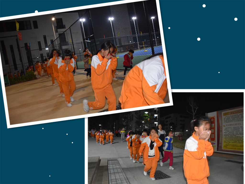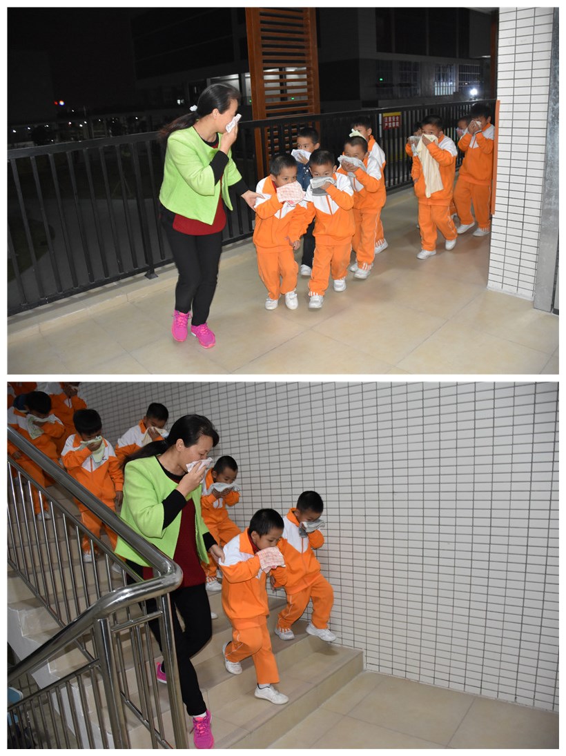 晚上21:00分,随着校园内响起警报声,各位老师立即到达指定岗位,引导楼内住宿生快速疏散,教师带领住宿生弯着腰、用手捂住口鼻,沿着学校指定楼梯口快速前进,有序撤离到学校操场的安全地带。4分钟,全体住宿生全部安全疏散完毕。