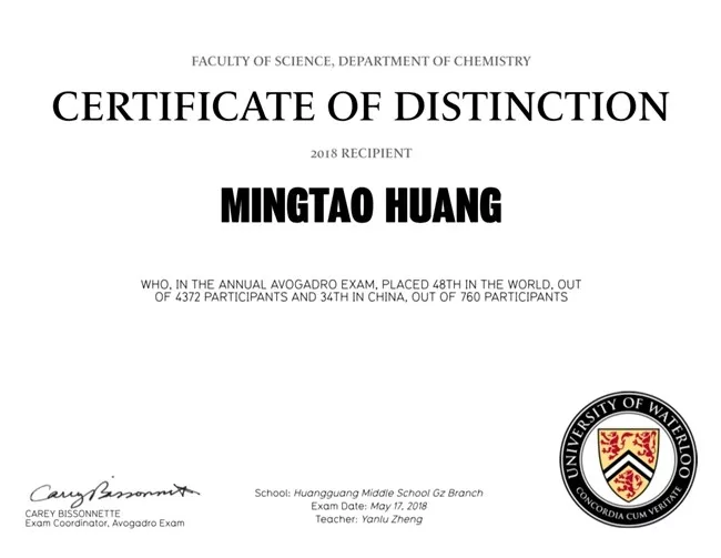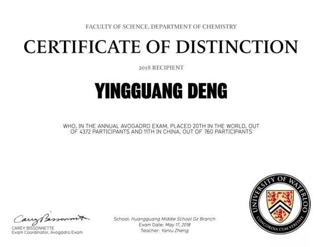 近日,2018滑铁卢阿伏伽德罗化学竞赛(2018 Waterloo Avogadro Exam INTL)圆满落幕。