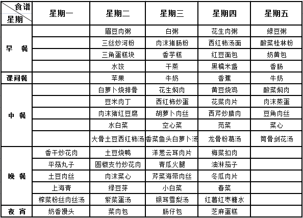 黄冈增城学校6月18日-6月22日(第十七周)学生食堂营养菜谱