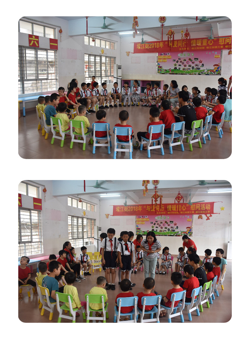 活动中,孩子们和福利院的小朋友一起,玩起了有趣的游戏,大家配合默契、亲密无间,个个喜笑颜开。