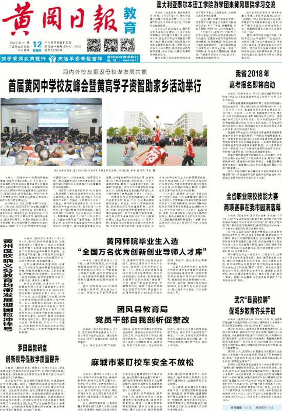 11月10至12日,首届黄冈中学校友峰会暨黄冈中学学子资智助家乡活动隆重举行。