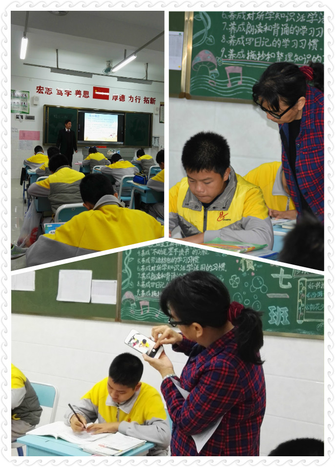 增城区教研室刘芳副主任,在听初中数学龙泽兴老师的课时,饶有兴趣地为仔细做练习的孩子留下珍贵的剪影。