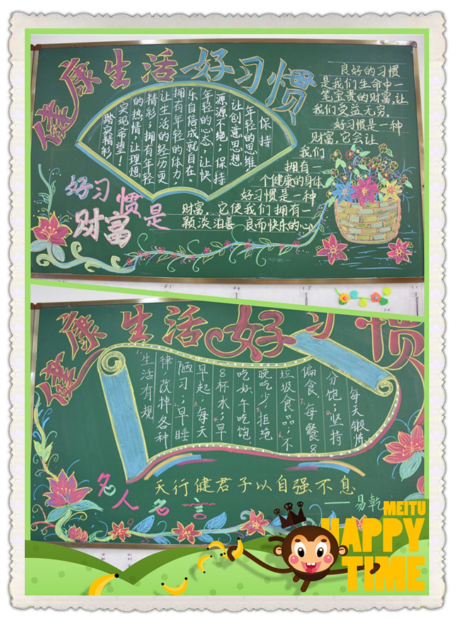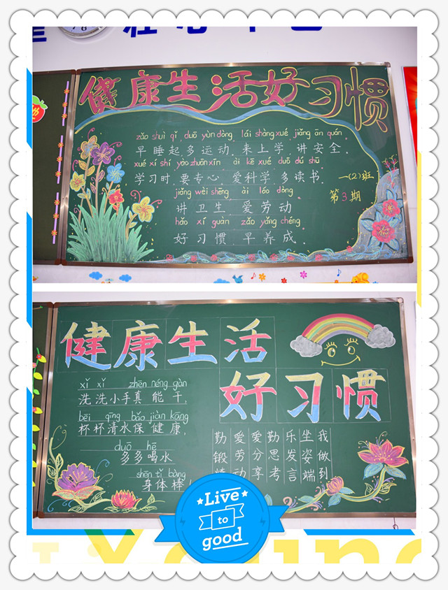 板报设计,尽善尽美 身为黄冈学子,拥有健康生活好习惯是不可或缺的,老师把殷切的希望描绘在黑板上,孩子们的内心,种下了好习惯的种子。 |