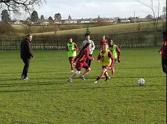 访问期间,同学们听取了北安普顿青年训练中心的课程,并与青年训练中心球员开展足球友谊赛,观看了北安普顿足球教练JIMMY指导的主力队员赛前训练,观看了北安普顿主场迎战罗奇代尔比赛,赛前参加了英式球迷午宴。