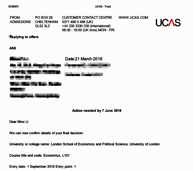 黄广国际部的李同学接到来自伦敦政治经济学院(LSE)经济学系的录取通知