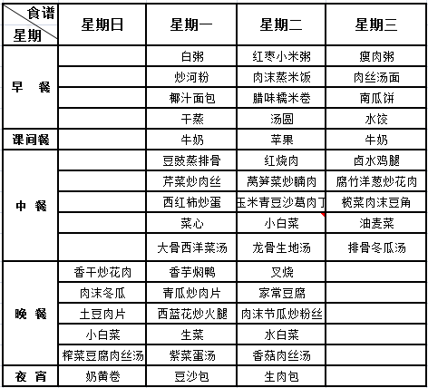 黄冈增城学校4月1日-4月4日学生食堂营养菜谱