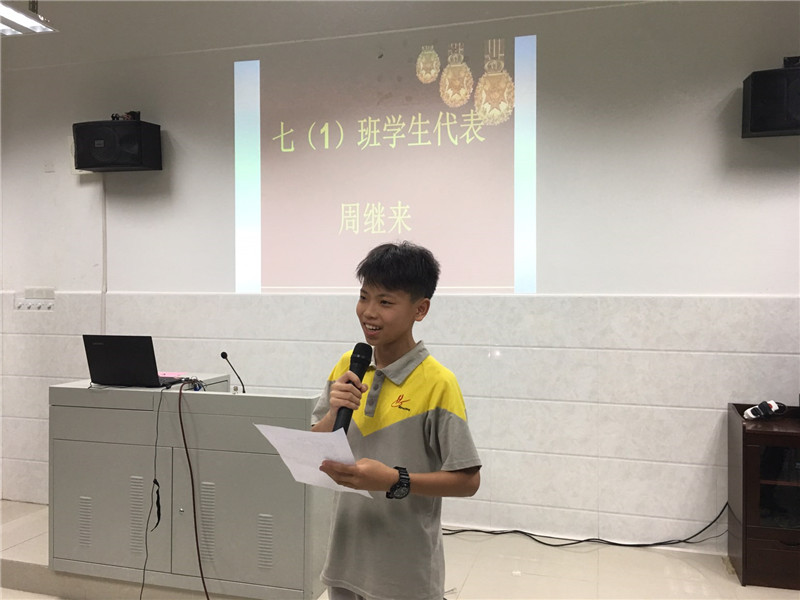 获奖学生代表周继来向全体学生作了学习经验交流,并发出“努力学习,我们的青春我们作主”的号召,希望同学们一起努力,争创佳绩。