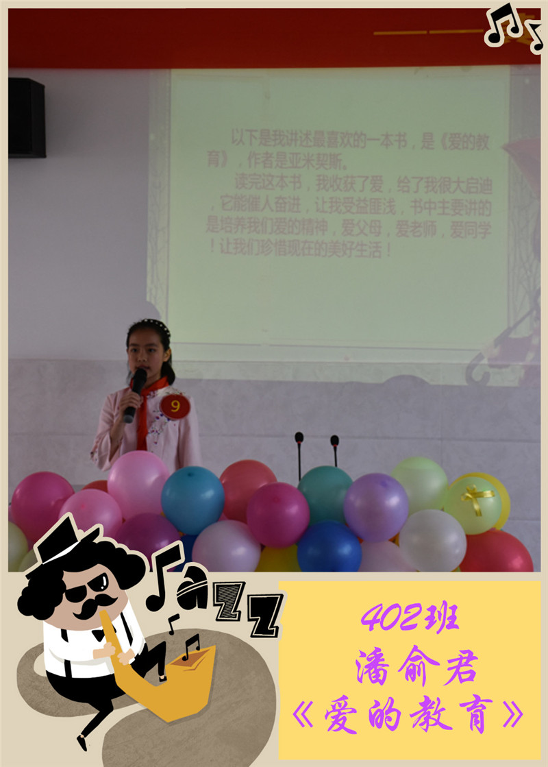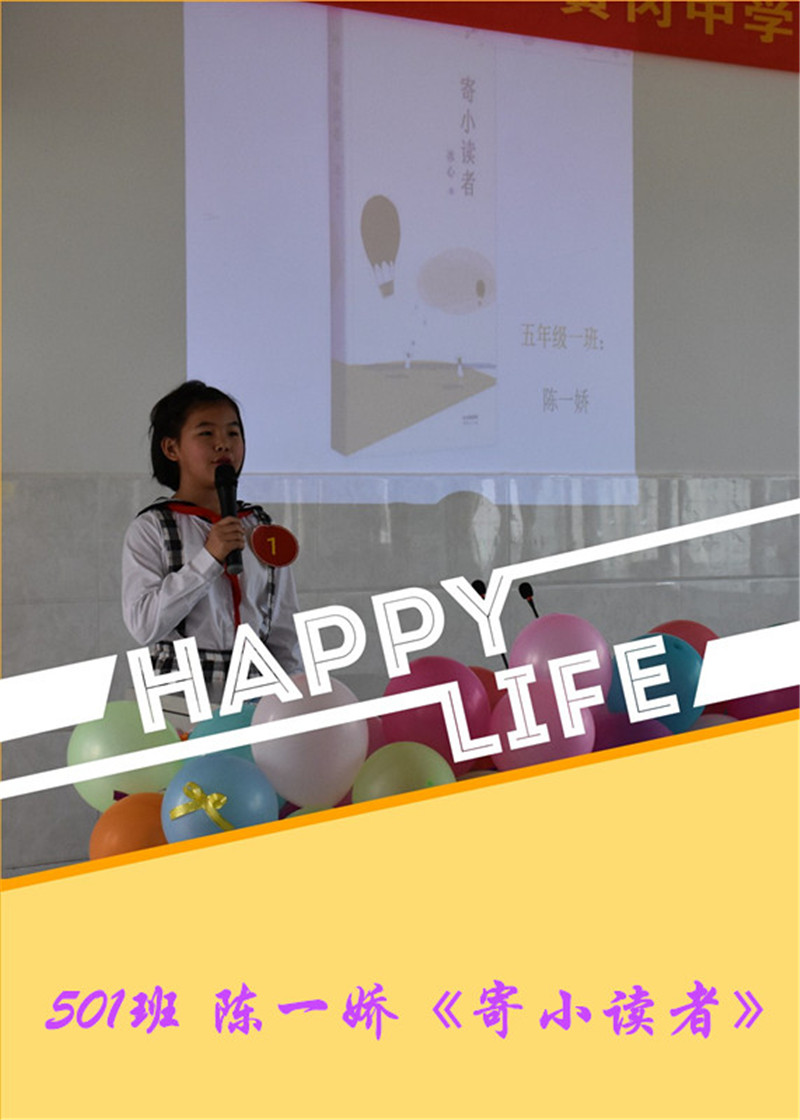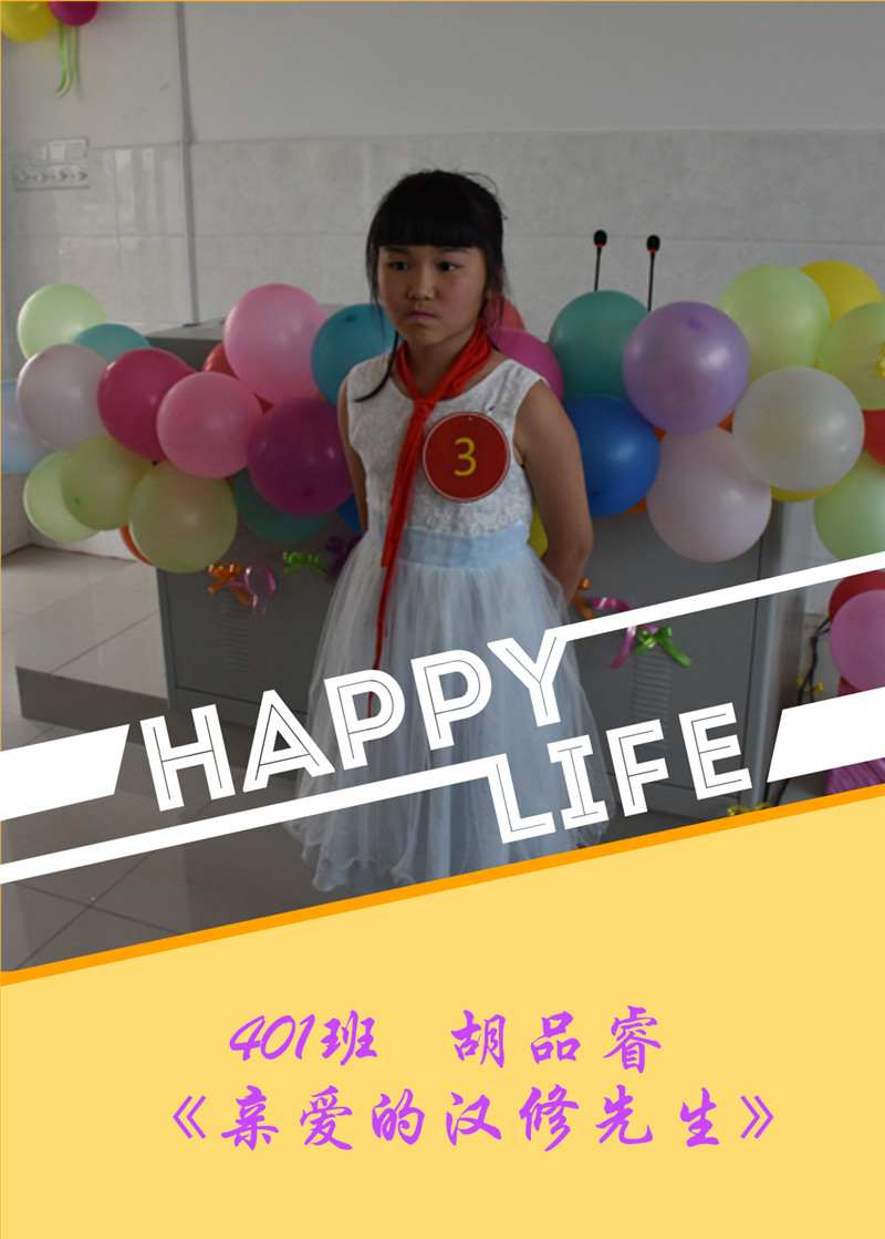 401班胡品睿同学全程笑容可掬,给人自然童真的感觉。她用《亲爱的汉修先生》诠释了一个道理——只要一个人坚定了一个信念,而且全力去做,就一定会成功。