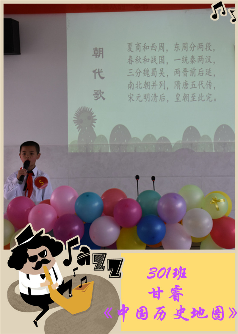 301班甘睿是一名自信从容、满是儒雅的小选手,他分享的《中国历史地图》引人入胜,一个个小故事令人遐想不已。