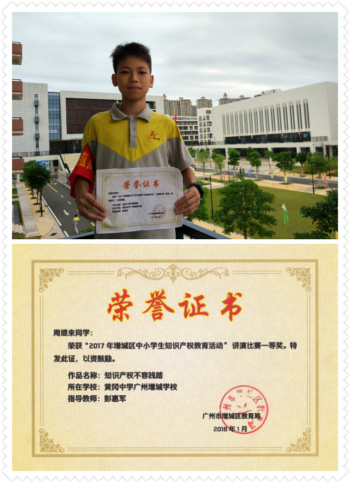 【喜讯】黄广增城学校学生获“增城区知识产权”演讲比赛一等奖