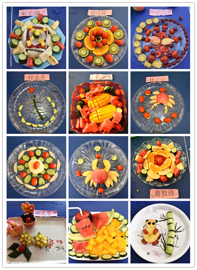 本次比赛根据学生年龄特点,分为三个组别共六个项目:一二年级整理书包、叠衣服;三四年级叠被子、包汤圆;五六七年级套被子、制作水果拼盘。