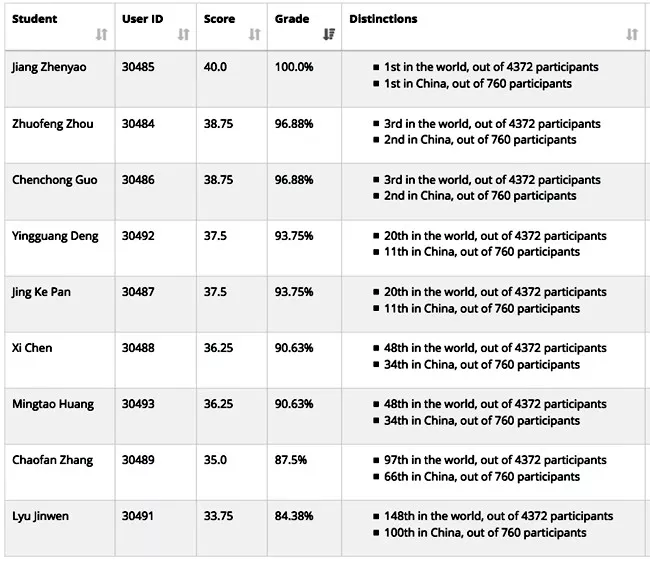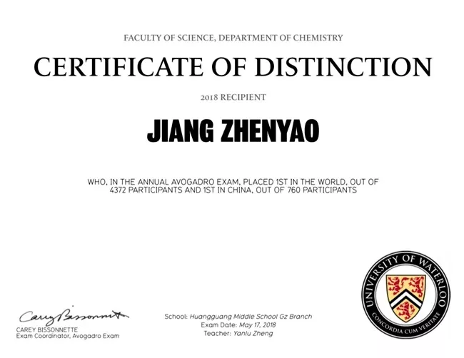 黄冈中学广州学校(简称黄广学校)国际部高一年级江镇瑶同学取得全球第一名的好成绩,郭晨翀和周倬锋也分别荣登该项比赛的全球第三名榜单!