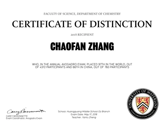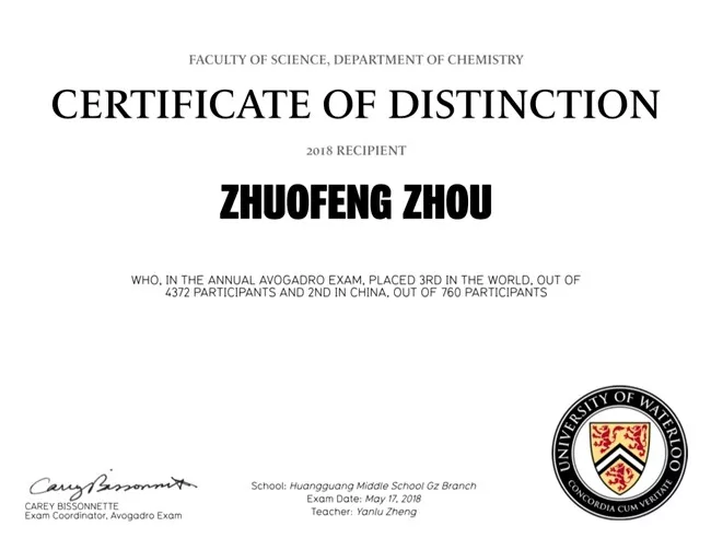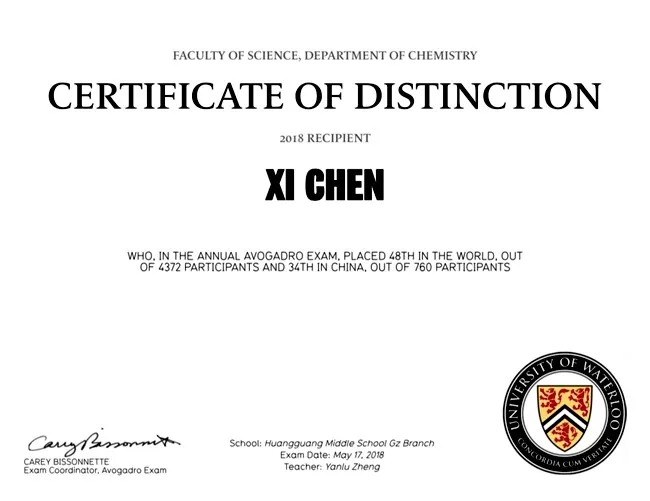 近日,2018滑铁卢阿伏伽德罗化学竞赛(2018 Waterloo Avogadro Exam INTL)圆满落幕。