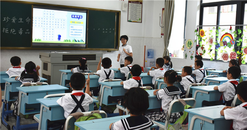 郑恒副区长一行首先在学校薛来武董事和蒋晓明校长的陪同下,巡视校园,观摩了各班开展的别开生面的禁毒教育课,黄广学子在课堂中落落大方的表现,对于禁毒知识的娓娓道来,给来宾们留下了深刻的印象。