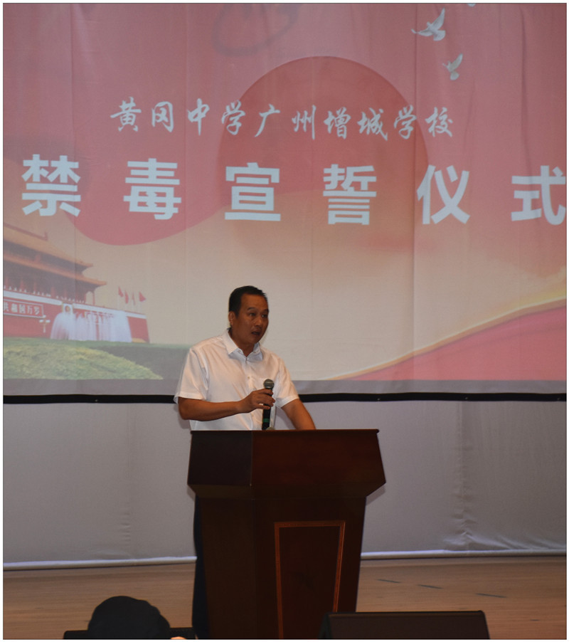 随后,在学校礼堂,举行了神圣而庄严的禁毒宣誓活动,郑恒副区长为活动致辞,勉励黄广增城教职员工继续推进毒品预防教育,努力实现“教育一个孩子、影响一个家庭、带动整个社会”的禁毒目标,并呼吁大家从我做起,提高防毒意识,远离毒品,筑牢防毒屏障。