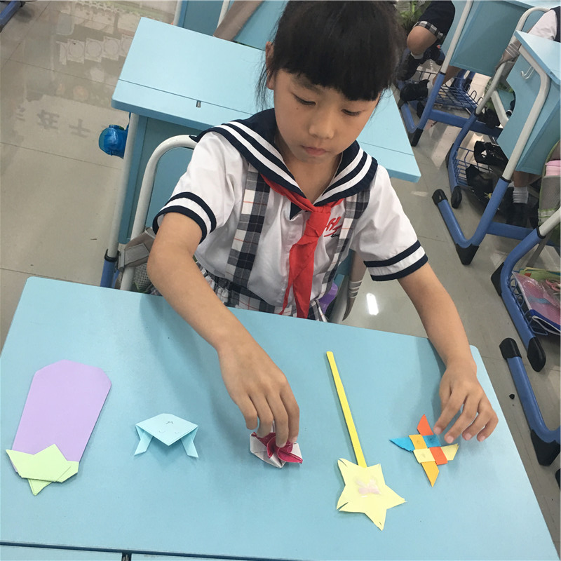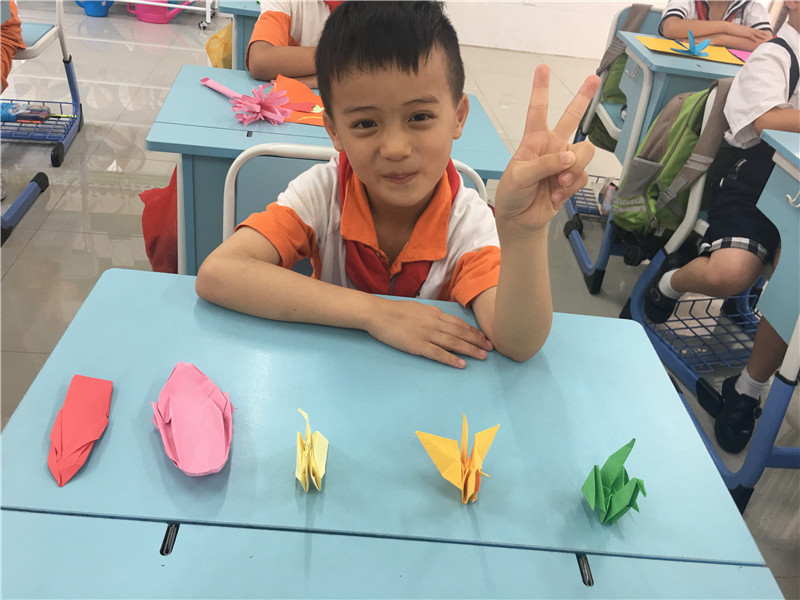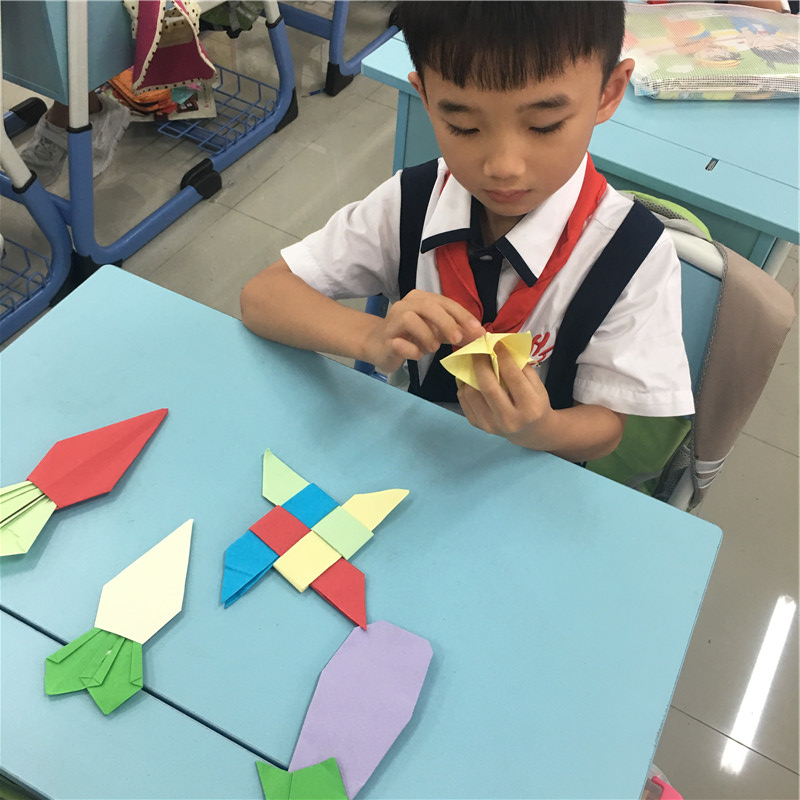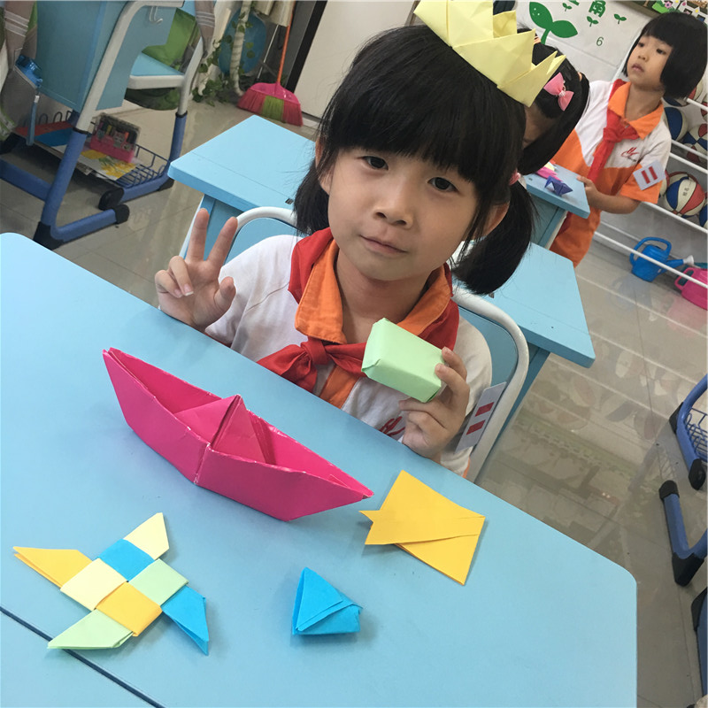 老师们在每堂课上都会引导孩子观察、讨论,探索折纸作品中的操作技巧,鼓励孩子们去学习,同时培养孩子欣赏美的能力。