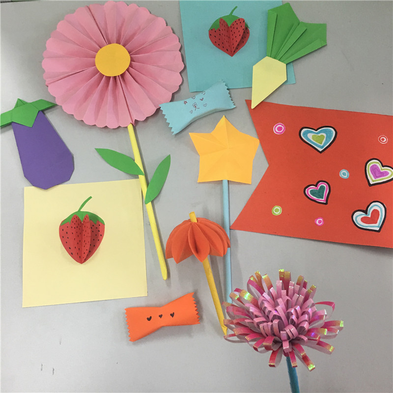 手工活动是充满想象和艺术的,当孩子们亲眼看到自己用简单的材料做成了一件件可爱、漂亮的手工品时,别提有多自豪了!
