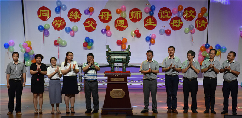 六年级毕业生为母校献上“担当”铜鼎留念。