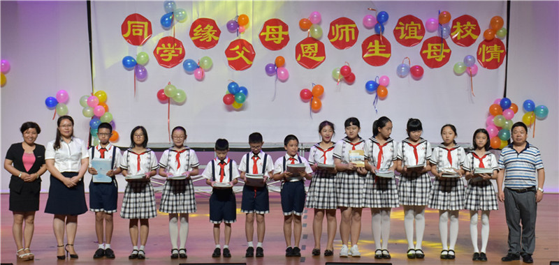 毕业典礼设有 “同学缘”、“父母恩”、“师生谊”、“母校情”四个篇章,表达了六年级毕业生对母校、老师、父母的感恩之情和同学之间彼此的情谊,也寄托了学校领导和老师对同学们的祝福和期盼。