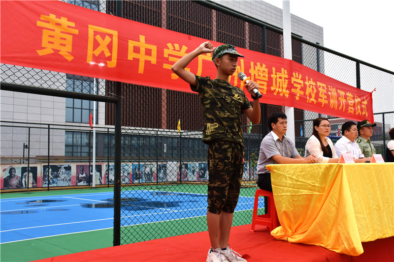黄广增城学校蒋晓明校长致开幕词,对参加军训的孩子们以及教官们提出殷切期望:希望孩子们能发扬“不怕吃苦,坚韧不拔”的精神,以饱满的热情、坚强的意志接受军训的考验,提升自己日后战胜困难的能力;希望各教官以极其负责的态度,严格中不失慈爱,在保护好孩子们安全的前提下认真完成军训项目,以达到理想的效果。