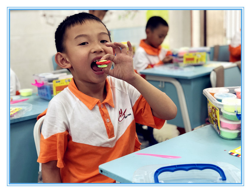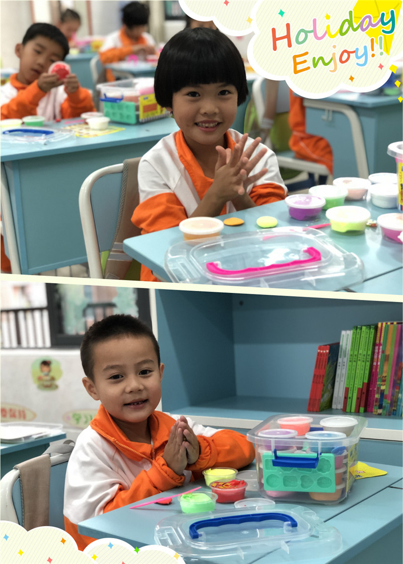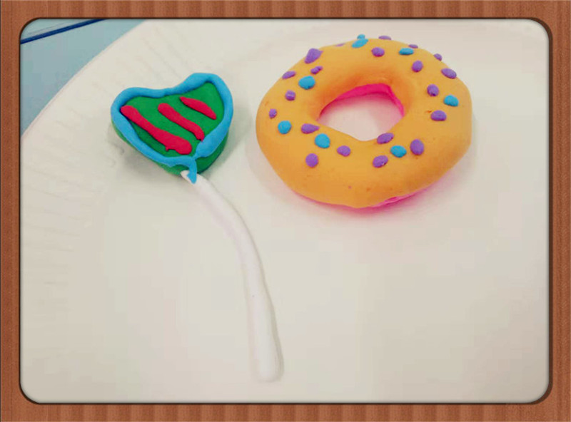 瞧,这些诱人的“食物”都是孩子们在美术课上,亲手用粘土制作出来的,真可谓爱意满满、情意浓浓!