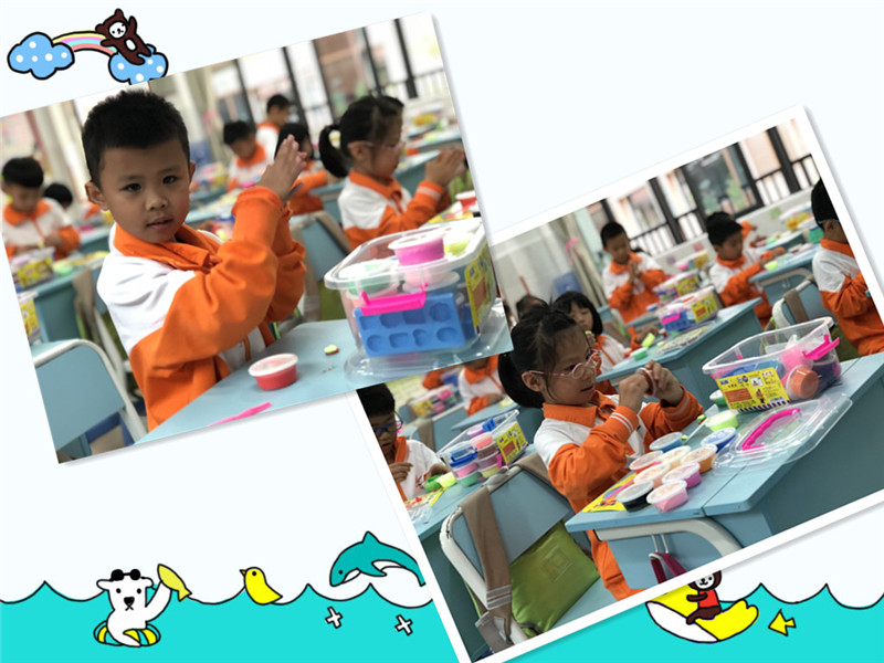 小小的粘土在同学们的手里,变成了一条“小鱼”,一个“汉堡”,一块块让人馋嘴的“牛肉”……