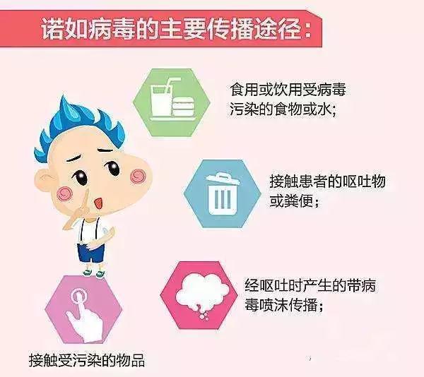 其中人与人的传播主要是通过粪-口途径(包括摄入粪便或呕吐物产生的气溶胶),或间接接触被排泄物污染的环境而传播;