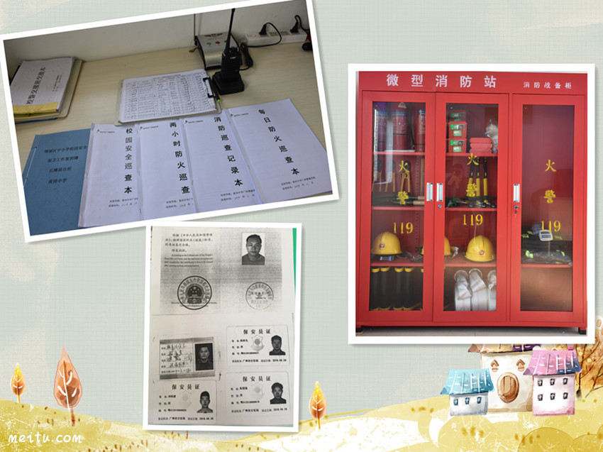 黄广增城学校坚持“安全第一,预防为主”的工作思路,严格执行校外人员入校的登记制度,校警24小时值班巡逻。定期提报《每日防火巡查记录》并及时填报到广东省消防网。